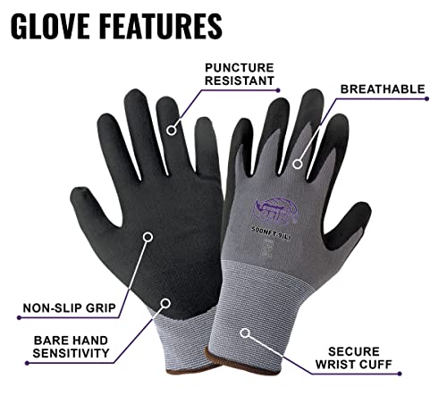 • BARE HAND SENSITIVITY – The 500NFT work gloves for men or women have a 15-gauge nylon shell that provides bare hand sensitivity, allowing dexterity for meticulous and detailed tasks. The working gloves are also breathable to reduce sweating.