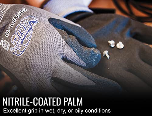 • NONSLIP – The nitrile-coated palm with New Foam Technology Finish provides a breathable glove while offering excellent grip in wet, oily, or dry conditions. Trust the Tsunami Grip gloves for a secure grasp in any situation, at home or on the job.