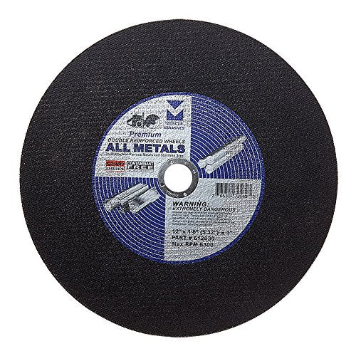 - 10 pieces of a 12" diameter x 1/8" thick Cut-Off Wheel for ferrous metals including stainless steel with a 1" arbor.