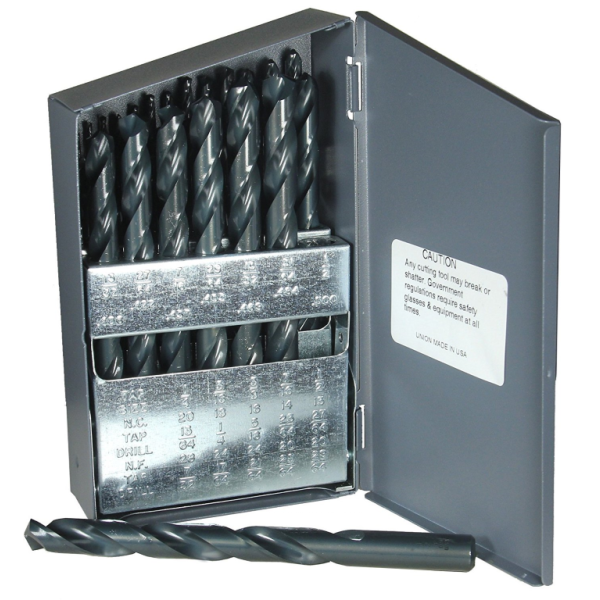 Set includes 1/16" thru 1/2" by 64ths. Packaged in a metal indexed case.